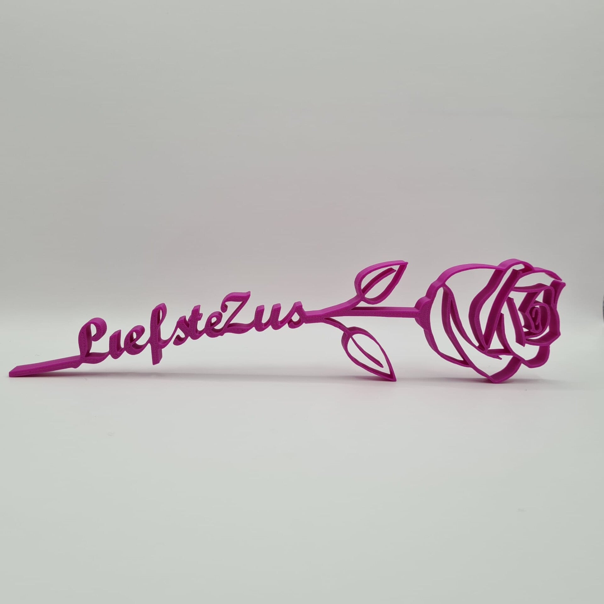 De vormgegeven roos is geprint in PLA en perfect als onderhoudsvrije decoratie voor in huis, op kantoor of als blijvend cadeau.