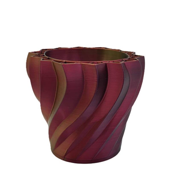 Niet elke 3D-print komt perfect uit de printer, en dat maakt sommige stukken juist bijzonder! Dit mislukte 3D-geprinte vaasje heeft kleine imperfecties of afwijkingen, maar is daardoor een uniek en charmant decoratiestuk.