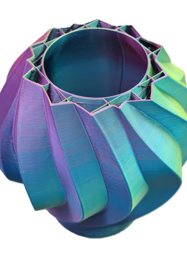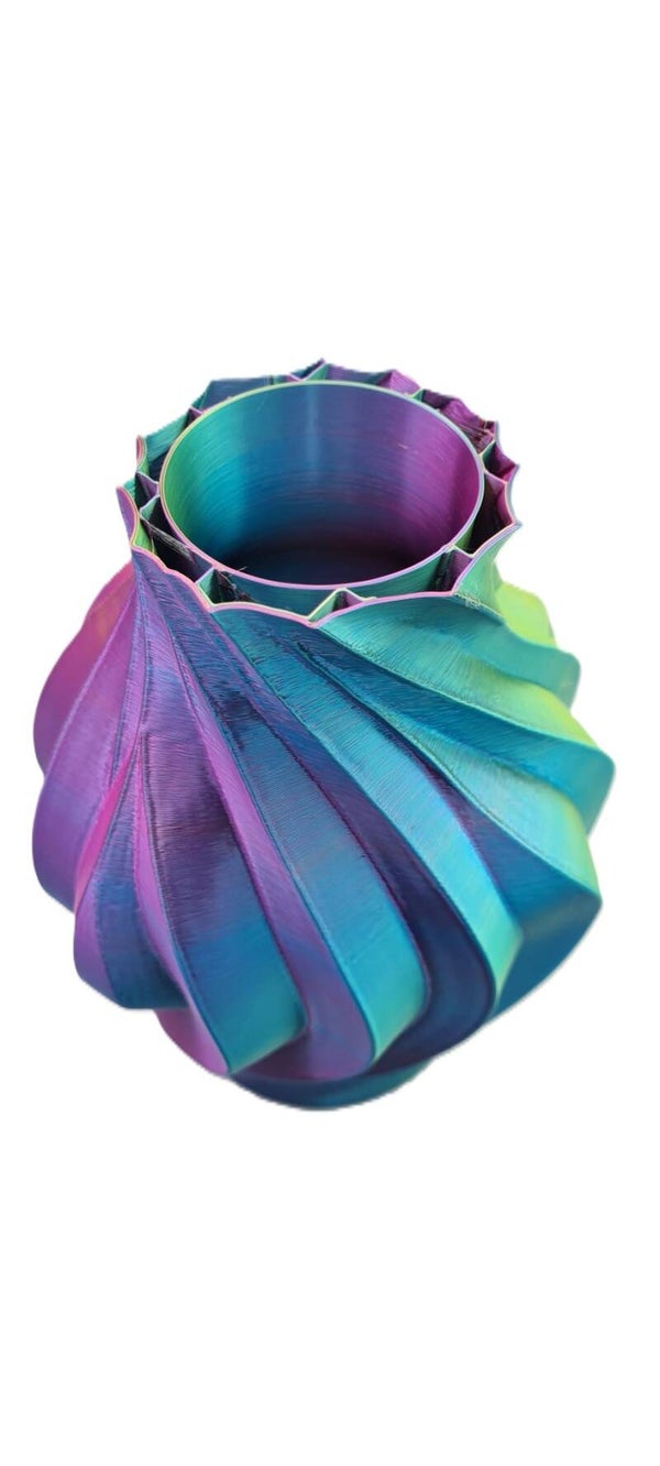 Niet elke 3D-print komt perfect uit de printer, en dat maakt sommige stukken juist bijzonder! Dit mislukte 3D-geprinte vaasje heeft kleine imperfecties of afwijkingen, maar is daardoor een uniek en charmant decoratiestuk.