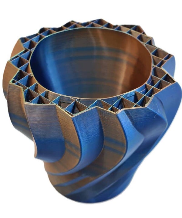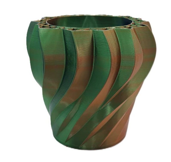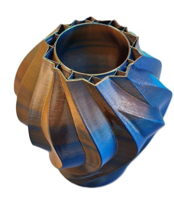 Niet elke 3D-print komt perfect uit de printer, en dat maakt sommige stukken juist bijzonder! Dit mislukte 3D-geprinte vaasje heeft kleine imperfecties of afwijkingen, maar is daardoor een uniek en charmant decoratiestuk.